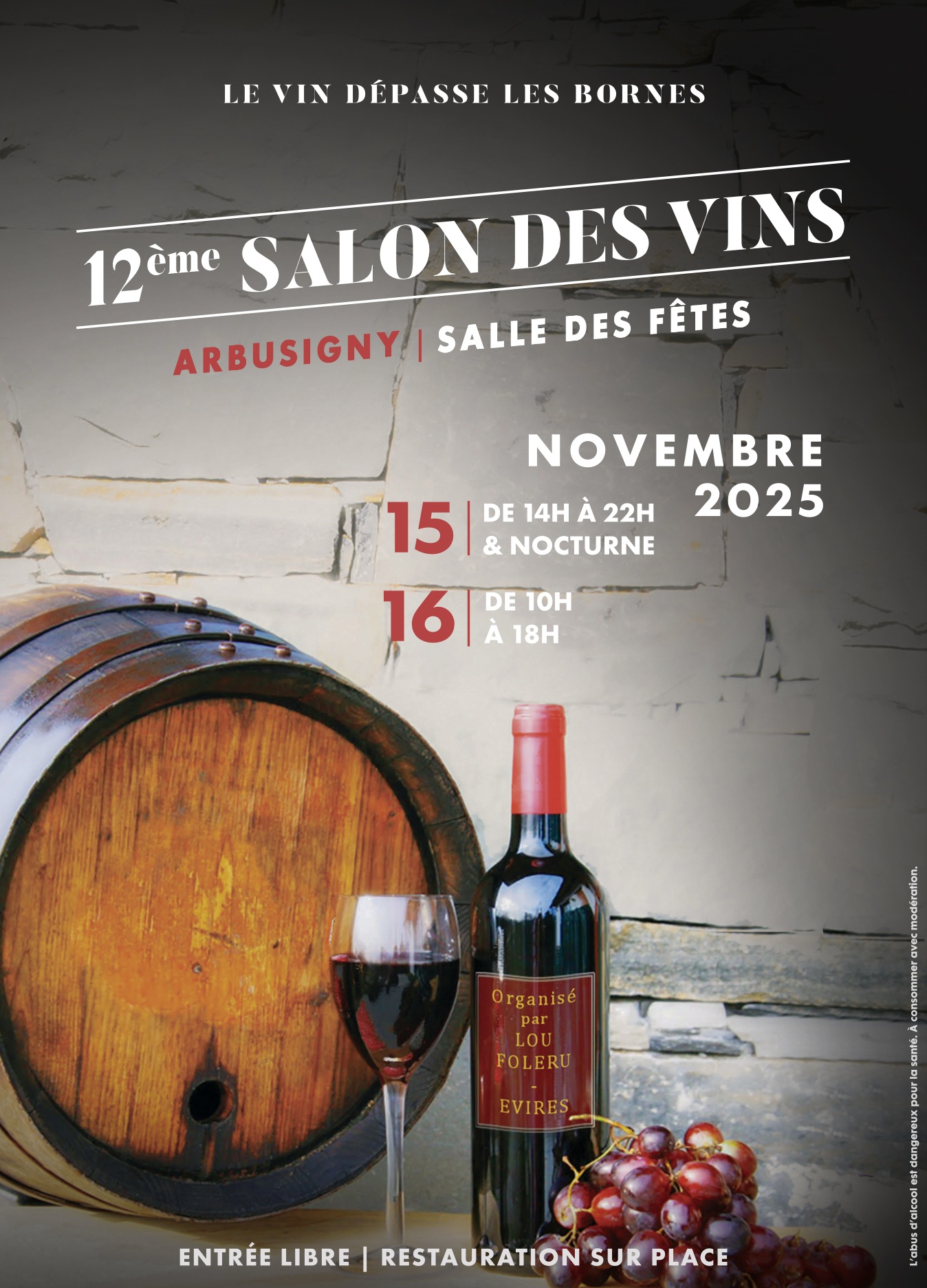 Toute l'équipe d'organisation ainsi que l'ensemble des bénévoles vous attendent très nombreux les 15 et 16 novembre à la salle des fêtes d'Arbusigny pour partager leur passion d'un pan du patrimoine Français : le vin.